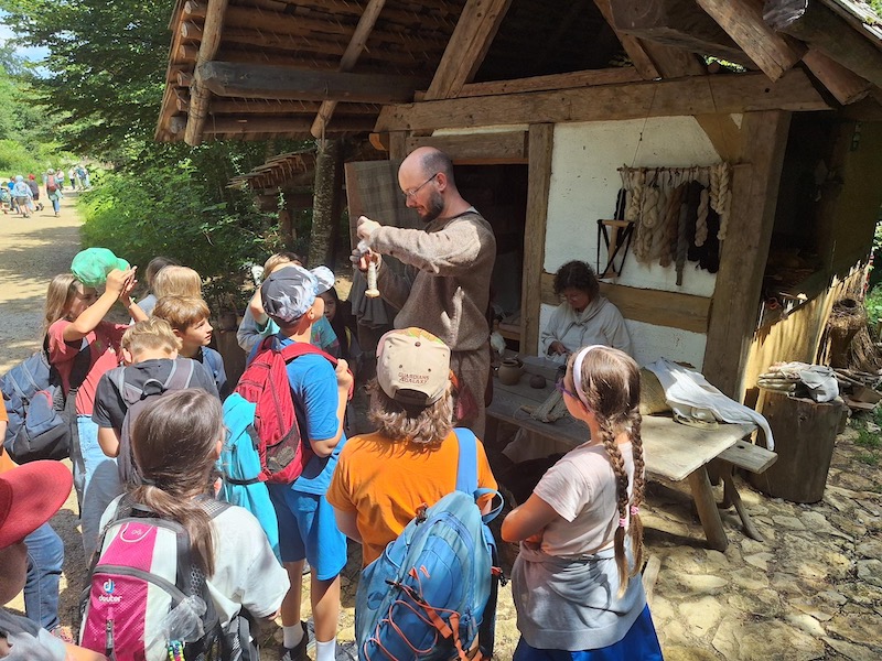 Am 10. Juli unternahmen die Grundschule Reichenau gemeinsam mit der Grundschule der Waldsiedlung einen Ausflug zu Campus Galli. Dort schauten sie vor Ort an, wie der St. Galler Klosterplan, welcher auf der Insel Reichenau entstanden ist, in ein richtiges Kloster umgesetzt wird. Das Besondere hierbei ist, dass nur die Arbeitstechniken und Materialien verwendet werden, die es auch im frühen Mittelalter gab. Durch Führungen, den Rundgang, aber auch Aktionen konnten sie einen Tag lang zurück ins Mittelalter reisen.